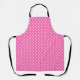 Pink polka dot apron with black straps, shown flat and worn by a person. The vibrant design adds a playful touch, ideal for cooking or baking.