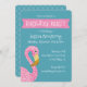Cute pink polka dot flamingo birthday party invitation with a pink banner on turquoise. White quatrefoil net pattern on reverse. Customise the text for your own party type! Contact shopkeeper if you need assistance.
