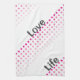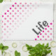 A fun and modern kitchen tea towel with pink polka dots. Personalise for a great gift for her.