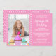 Add your child's favourite photo to customise this pink polka dot with cupcakes birthday invitation