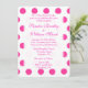 Pink and white polka dot print design for your wedding invitations. Put the first names of the Bride and Groom on one side giving your invitations a less formal feel. On the other side the pertinent wedding information adds a classic flair. You can easily change the text. If you need any help or would like something different please message me. I am available for requests.