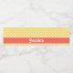 Pink polka dots on yellow water bottle label