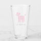 Enjoy a pint of your favourite cold beverage out of this unique 16 oz drinking glass. Pink Poodle design with custom text for your name or slogan. Makes a fun personalised gift for pet Poodle Lovers. Visit Jenn's Doodle World for more custom drinkware and dog breed gifts.