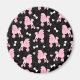 Cute Pink Poodles Pattern with Bows and Hearts on Delicate Swirl Pattern a Soft Black Background Refrigerator Magnet.