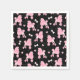 Pink Poodles and Bows Pattern Black Napkin