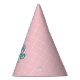Throw a birthday party by the pool with these modern "palm springs" inspired pool party hats. It features a pink patio tile and vintage-inspired typography in teal.