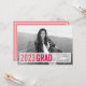 Trendy and modern 2016 graduation photo announcement or party invitation in chic colours features your landscape orientated senior portrait, with "201X Grad" and your name and school on a transparent white box. Coral and hot pink colours give this modern invitation card a trendy, colourful, girly look. Add your party details to the back in vibrant coral pink and white; or, clear the back text to use as a simple graduation announcement.