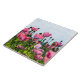 This design features a beautiful image of a field of pink poppies in bloom. The bright color of the flowers looks incredible against the sunlit sky behind.