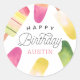 Designed to match our watercolor popsicle kids' birthday party invitations, these cute personalised stickers feature a border of watercolor popsicles in green and pink. "Happy Birthday [name]" appears in the centre in whimsical lettering.