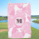 This custom ladies personalised golf towel features white and pink hydrangea flowers with a customisable monogram on a pink background. It's a stylish, cute gift for a golfer. It's a useful present for your mum, sister, grandma, or any lady whose hobby is playing golf. Women monogram golf towels.