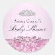 Baby Shower Sticker. Pretty pink roses & tiara. Exclusive Zazzle. Customise with your own details. PLEASE NOTE all flat images! They Do NOT have real Jewels!!