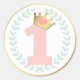 Pink Princess Crown Baby Girl First Birthday Classic Round Sticker