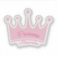 This delightful contour-cut sticker features a charming pink crown adorned with the word “Princess” in elegant script. Below the crown, a customisable name is displayed in the same dark pink stylised font. The design exudes a playful yet regal aesthetic, making it perfect for young girls who dream of fairy tales and princesses. However, it also appeals to adults who embrace their inner royalty, whether they see themselves as Queens or Divas.