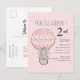 Pink Princess Elephant Balloon Dots 2nd Birthday Invitation Postcard