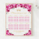 This elegant and glamourous Quinceañera table seating chart features a gold crown and beautiful hot pink floral arrangements with gold confetti. The text combines handwritten script and modern sans serif fonts for a classy and sophisticated look.