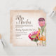 Square wedding invitation with summer and fall flowers. Protea flowers and tiger lilies coordinate beautifully with matching envelopes, return-address labels, and party supplies. Cards are easy to personalise, and size choices are available.