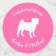 Include the big brother or sister fur baby in the celebration with this adorable pug dog baby shower design! Perfect for a puppy lover with a baby on the way. The pug is next to an adorable vintage carriage. The pink background makes it perfect for a baby girl on the way! Also a great design for puppy showers too!