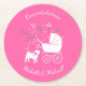 Pink Pug Dog Theme Party Celebration Round Paper Coaster
