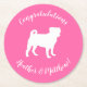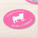 Pink Pug Dog Theme Party Celebration Round Paper Coaster