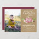 Fall in love with these adorable rustic kids birthday party invitations featuring a favourite photo on the left side. Design features a pink watercolor pumpkin adorned with burgundy and pink flowers and green foliage on a rustic kraft background. "Our little pumpkin is turning" appears across the top in chic calligraphy script lettering, with your child's age inscribed on the pumpkin. Sample shown for a first birthday. Personalise with your birthday party details beneath in rich navy blue lettering.
