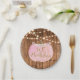 Pink Pumpkin Fall Rustic Wood Lights 1st Birthday Paper Plate
