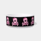 This custom ceramic pet bowl has punk pink girly skull and crossbones. It is repeated around the dish. It is pink with a pink bow on the skull. The centre has room for your pet's name in the template. Click customise to change the background colour or font.