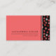 The left portion features custom name and title or role presented on a trendy pink background; right justified. The right side features the stylish whimsical puppy paw print pattern. The back of the card is a complimentary design with name, website address and contact information presented in coordinating text.