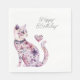 Pink Purple Blush Flowers Heart Love Cat Birthday Napkin