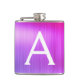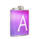 Pink - Purple Brushed Metal Monogram Name Hip Flask