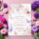 Elegant Watercolor Pink and Purple Floral Girl First Holy Communion Invitation