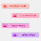Cute and colourful labels with butterflies next to your child's name in a hand-writing font in pink and purple. Back to school labels with pretty butterflies and pretty colours. Label your daughter's clothes or school things with these pretty butterfly name labels in shades of pink and purple.