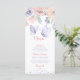 This sweet pastel butterfly baby shower menu is so cute! Beautiful watercolor flowers in soft blush pink and lavender purple. Two pretty butterflies decorate this unique design and add a feminine touch. The elegant calligraphy script font can be changed to any color or style of your choice.