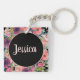 Pink and purple watercolor floral Christian Bible verse keychain, personalised on the back with your name. Psalm 46:5 "God is within her, she will not fail."