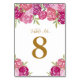 Pink & Purple Floral Roses Leaves White Wedding Table Number