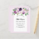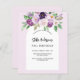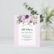 A blush pink background and a white arch frame. Decorated with violet, purple and pink watercolored flowers and greenery. Personalise and add your name and party details.