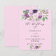 A pink background. Decorated with purple watercolored flowers and greenery. Personalise and add your names and party details.