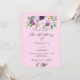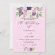 A pink background. Decorated with purple watercolored flowers and greenery. Personalise and add your names and party details.