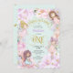 Enchanted Garden Fairy, Pink purple flowers Invitation. Fairy themed birthday invitation for a Baby girl's 1st birthday.