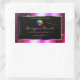 The design features a bright shimmering pink purple glitter frame with tiny glitzy stars on a plain black background.