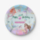 Pink Purple Glitter Mermaids 5th Birthday Party Paper Plate