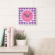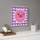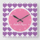 Pink & Purple Heart Print Girl's Bedroom Square Wall Clock
