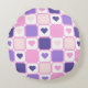 PINK & PURPLE HEARTS AND PLAID PATTERNS ROUND CUSHION