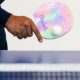 A trendy holographic backgrond in pink, purple, mint green. Decorated with drips in pink and purple. Personalise and add a name, written with a girly modern hand lettered style script. Purple coloured letters.