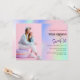 A pink, purple, mint green holographic background. Personalise and add a photo and party details.