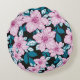 pink purple lily flower blue leaf black background round cushion