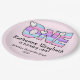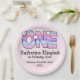 Pink Purple Ombre Stripes Hearts First Birthday Paper Plate