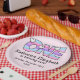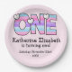 Celebrate a lovely First Birthday with this sweet design! Features a soft pink background and the words 'ONE' in stripes of pink, purple, and blue. This design is easy to match with decorations making for a perfect birthday party celebration!