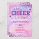 Pink Purple Sequin Cheerleader Girl Birthday Invitation