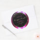The design features a bright shimmering pink purple glitter frame with tiny sparkling stars on a plain black background.