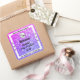 Make a lasting impression with this elegant and modern product label design featuring a luminous pink and purple gradient small to large glitter graphic with sparkling stars. The pretty white square border matches with a silver shimmery frame and diamonds.